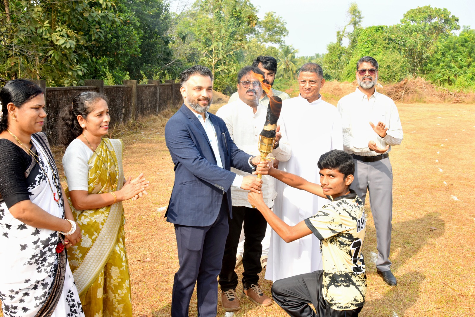 The school flag was hoisted by the Chief Guest, Mr. Eric Arthur D’Sa, officially declaring the Sports Day open. The torch was then lit by the Administrator, CA Pritish Burton D’Sa, and it was blessed by the Correspondent at the St. Lawrence Shrine.