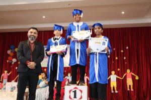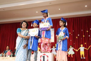 As part of the occasion, the General Proficiency Prizes 2024–25 were distributed to outstanding achievers. Prizes for the Lucky Games, conducted in honour of Children’s Day, were also awarded, bringing smiles and joy to the students. Entrepreneur Mr. Oliver Quadras from Mumbai was also present in the children’s day program.